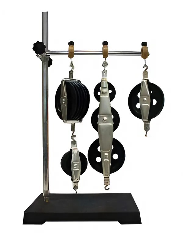 Блоки снабжены крючками для сборки механизмов и установки на штативе. Комплект позволяет демонстрировать свойства подвижного и неподвижного блоков, свойства системы из таких блоков.