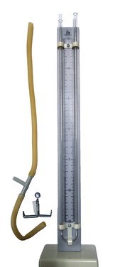 Прибор представляет собой U-образную стеклянную трубку, закрепленную на пластине со шкалой с делениями через 5 см и нулем посередине. Пластина с трубкой устанавливается  на пластмассовую подставку. Сзади пластины расположен вырез для крепления прибора на штатив (нижняя часть прибора при этом должна опираться на стол).