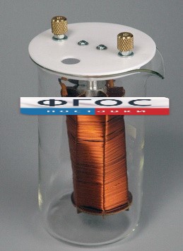 Катушка опущена в химический стакан объемом 400 мл., который закрывается крышкой с отверстием для термометра.