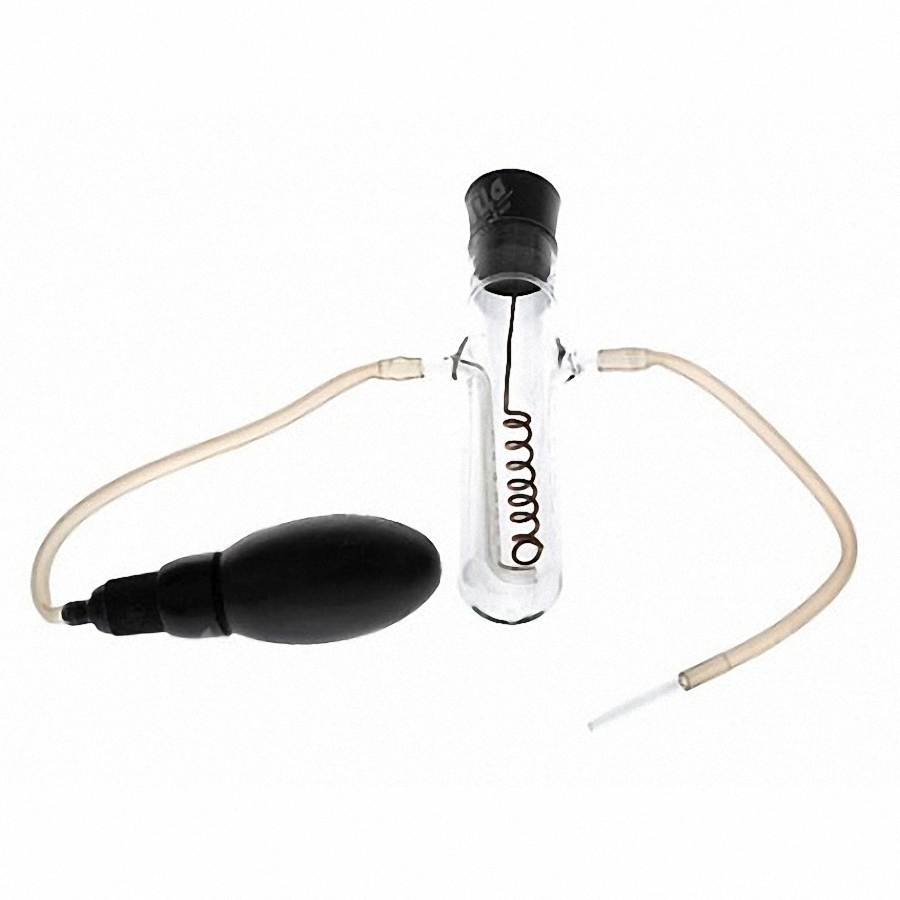При работе с прибором используется отрезок резиновой трубки длиной 130-150 мм. с прямым стеклянным наконечником и резиновый баллон (в комплект прибора не входят).