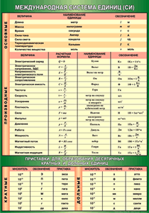 Главная Каталог Демонстрационные учебно-наглядные пособия Кабинет физики Таблица "Международная система СИ. Приставки для образования десятичных кратных и дольных единиц" (100х140 сантиметров, винил)