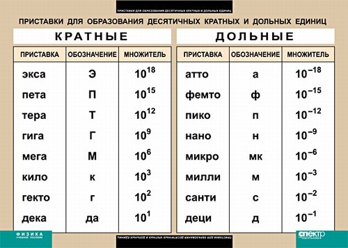Таблица. Физика. Приставки для образования десятичных кратных и дольных единиц. - fgospostavki.ru - Королёв