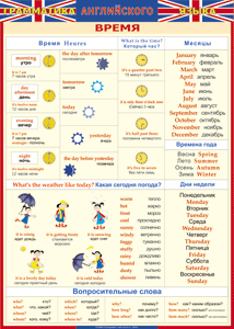 Главная Каталог Демонстрационные учебно-наглядные пособия Кабинет иностранных языков Таблица "Грамматика английского языка. Время" (100х140 сантиметров, винил)