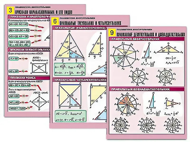 Комплект таблиц по геометрии "Планиметрия. Многоугольники" (10 таблиц, формат А1, ламинированные) - fgospostavki.ru - Королёв