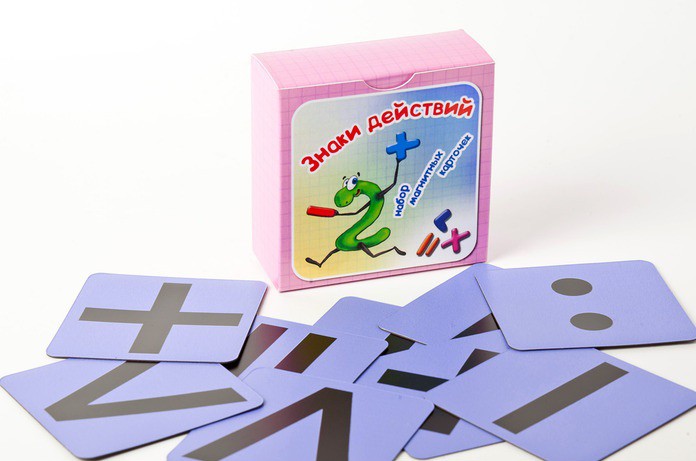 Данный набор "Знаки действий" может быть использован с карточками с числами от 1 до 20 и круглыми числами.