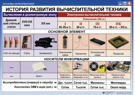 Комплект демонстрационных учебно-наглядных таблиц представляет познавательный и информационный материал на темы начального курса информатики: