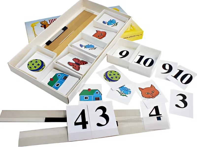 Предназначено для использования на уроках математики в первом классе начальной школы, позволяет формировать у детей навыки счета в пределах двадцати, сложения и вычитания в пределах десяти. Учебное пособие представляет собой набор карточек с цифрами от 1 до 10 и пяти видов фигурок разного цвета.
