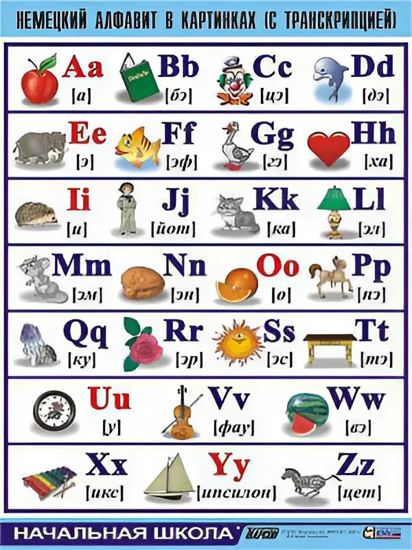 Главная Каталог Демонстрационные учебно-наглядные пособия Кабинет начальной школы Таблица демонстрационная "Немецкий алфавит в картинках" (винил 70*100)