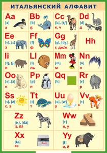 Главная Каталог Демонстрационные учебно-наглядные пособия Кабинет начальной школы Таблица "Итальянский алфавит в картинках (с транскрипцией)" (100х140 сантиметров, винил)
