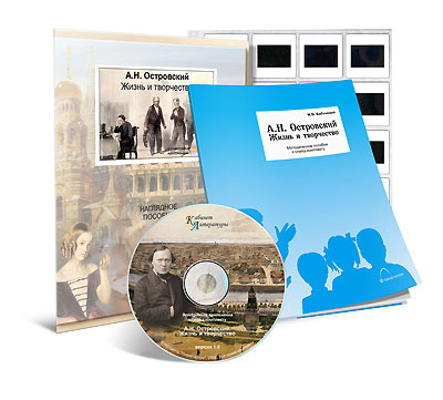 Пособие включает в себя СD-диск, содержащий наглядный изобразительный и аудио материал, посвященный жизни и творчеству А.Н. Островского: портреты писателя в разные периоды жизни, иллюстрации к произведениям («Гроза», «Снегурочка», «Бедность — не порок» и др.); материалы, посвященные театральным постановкам по пьесе «Гроза»; приложение на альтернативном носителе – слайдах для диапроектора, методическое пособие.