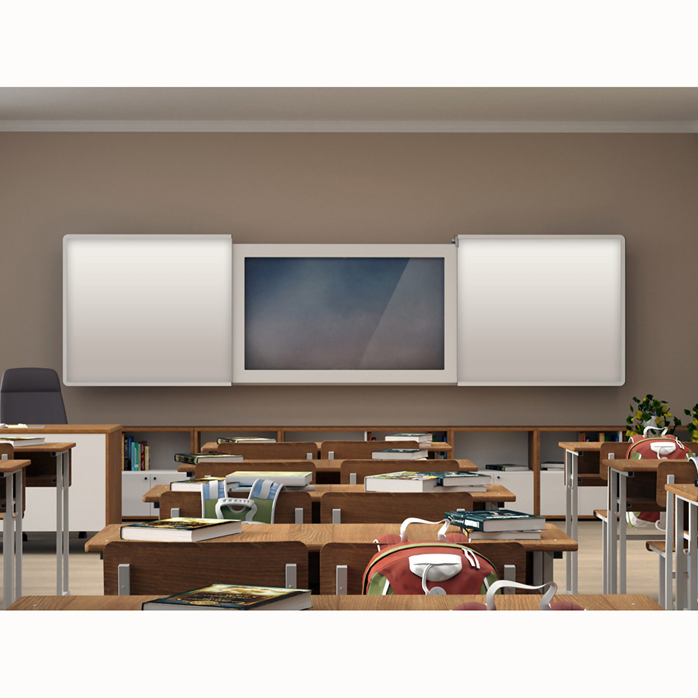 Современная школьная доска, сочетающая пишущую магнитно-маркерную поверхность и интерактивный экран со встроенным компьютером. Раздвижная конструкция доски «Фибоначчи» позволяет трансформировать рабочую зону по желанию преподавателя, и совмещать традиционные занятия от руки с инновационными инструментами в образовании. Подходит для оснащения школ, учреждений культуры, детских кружков, развивающих и коррекционных центров для детей.