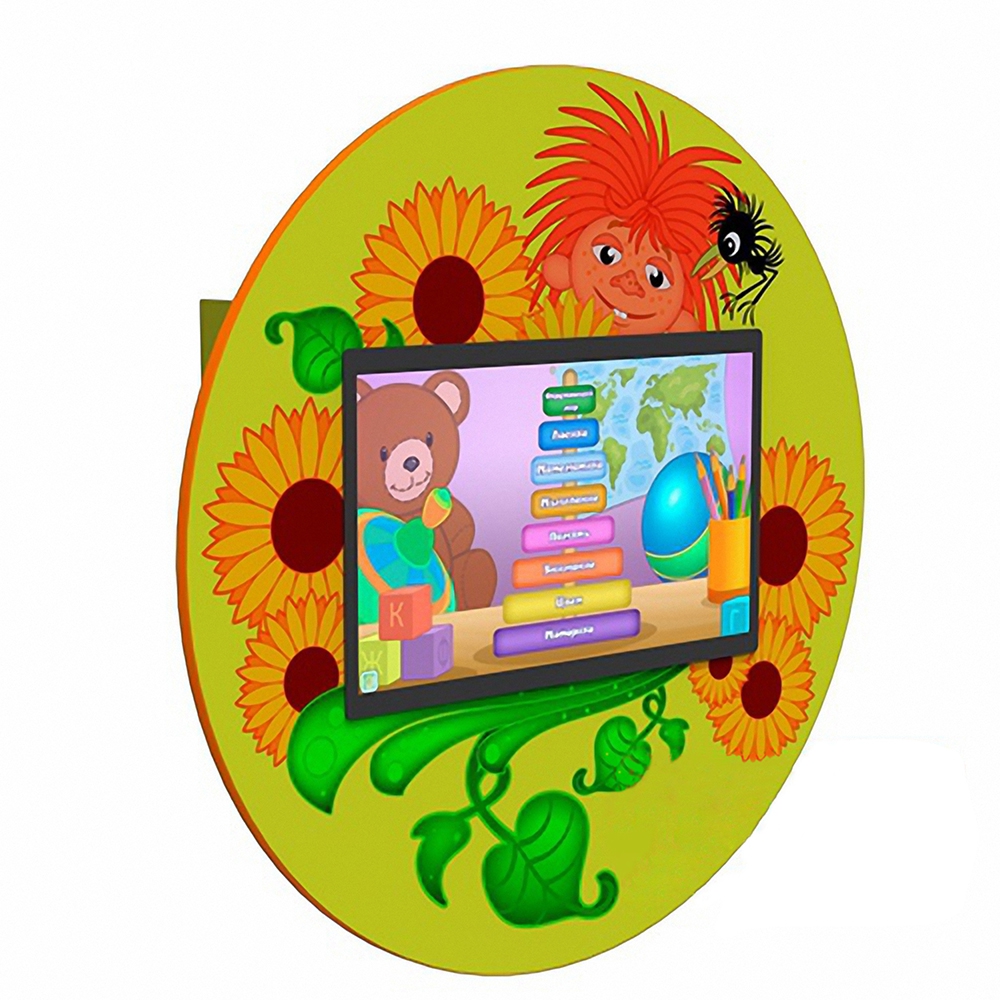 Конструкция представлена в навесном круглом корпусе с сенсорным экраном, стилизованным под мультфильм «Антошка».