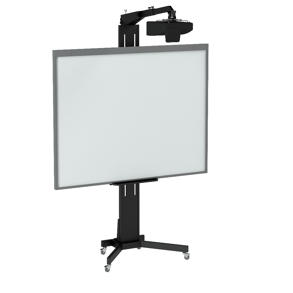 Мобильная стойка для интерактивных досок с возможностью установки короткофокусных и ультракороткофокусный проекторов. Совместима с большинством креплений для проекторов. Перемещение доски относительно стойки, возможно, как в вертикальном, так и в горизонтальном направлении.