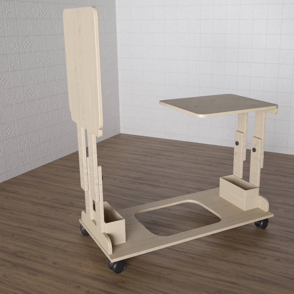 Стол «Доступная инклюзия» №3 предназначен для использования детьми, имеющими заболевания в области ОДА; обеспечивает комфорт во время учебы; является индивидуальным рабочим местом. Конструкция стола не совсем обычная, предназначена для совместного использования с вертикальной стойкой и учитывает все особенности детей с ОВЗ. Стол имеет колесики, что облегчает его перемещение. Предназначен для оборудования учебных помещений в центрах коррекции и реабилитации.