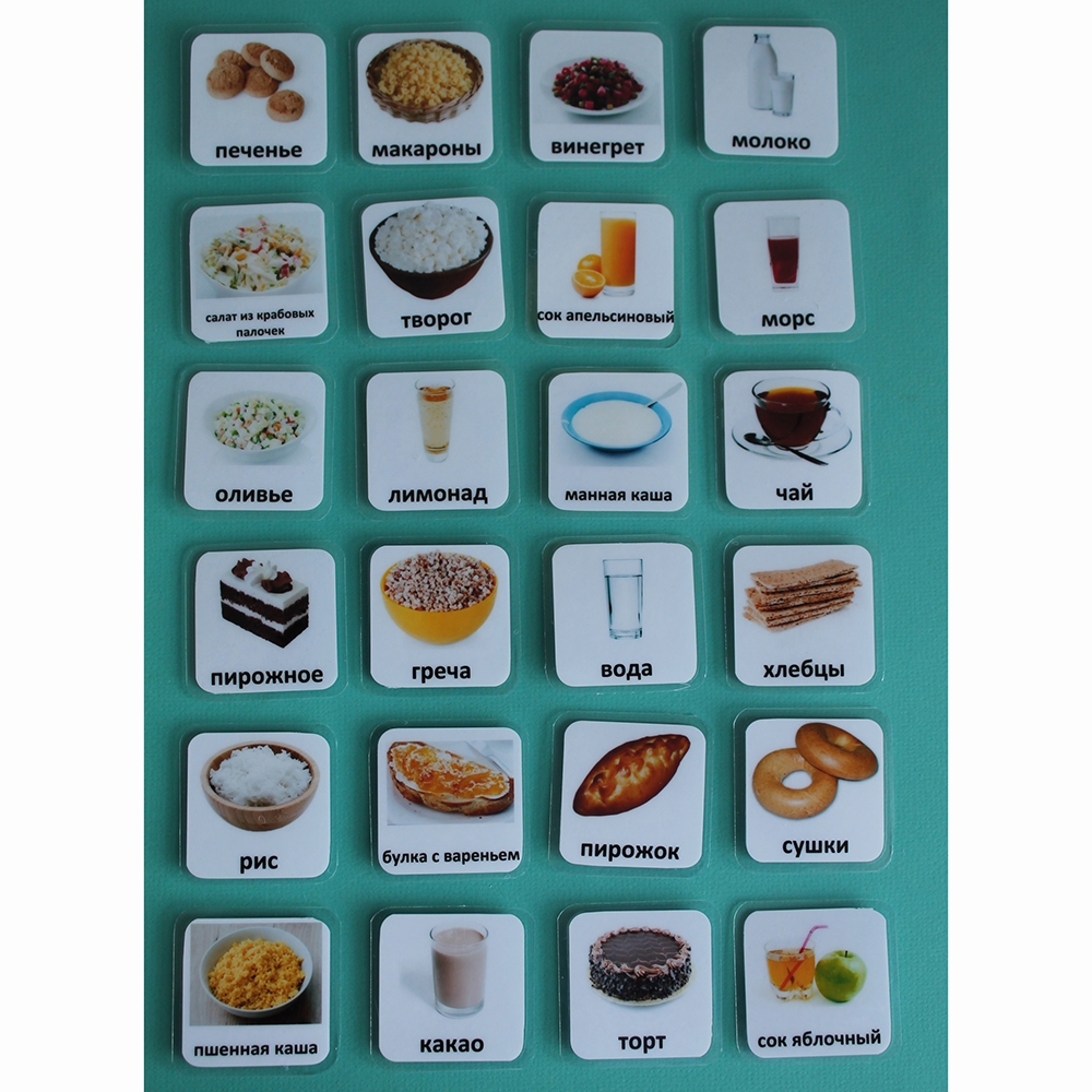 Карточки PECS – система альтернативной коммуникации для детей, у которых трудности с речью и общением. Карточки "Еда-2" помогут вашему ребенку в повседневной жизни, уменьшат неприемлемое поведение, структурируют день. Они пригодны для использования в коммуникативных книгах и визуальных расписаниях.