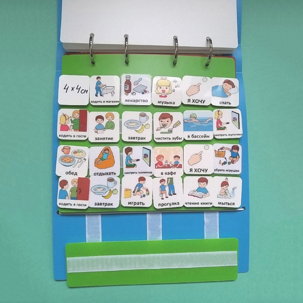 Папка (коммуникативная книга) для карточек пекс -помощник в системе альтернативной коммуникации для детей, с трудностями в речи и общении.