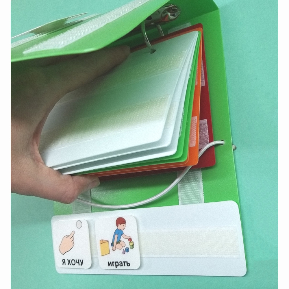 Очень важно, чтобы у ребёнка была именно своя собственная книга с карточками, которую он не делит ни с кем. И что книга по мере совершенствования навыков может и должна видоизменяться, а так же возможно использование разных книг для разных ситуаций: дома и в школе, например.