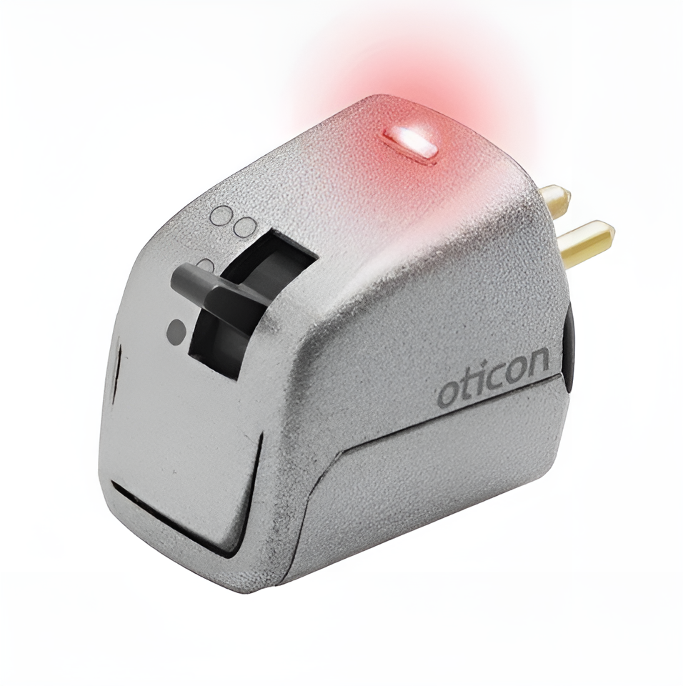 Приемник разработан специально для слуховых аппаратов, повторяет и продолжает их дизайн. Этот приемник присоединяется к слуховым аппаратам через запирающийся отсек батарейки, что предотвращает случайное отсоединение и потерю.