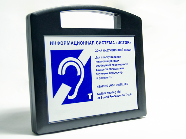 Система информационная переносная предназначена для передачи аудиоинформации лицам с нарушенной функцией слуха при повышенном уровне окружающего шума или при наличии преграды между собеседниками в общественных и многолюдных местах, в зонах обслуживания населения (возле стоек информации, кассах).