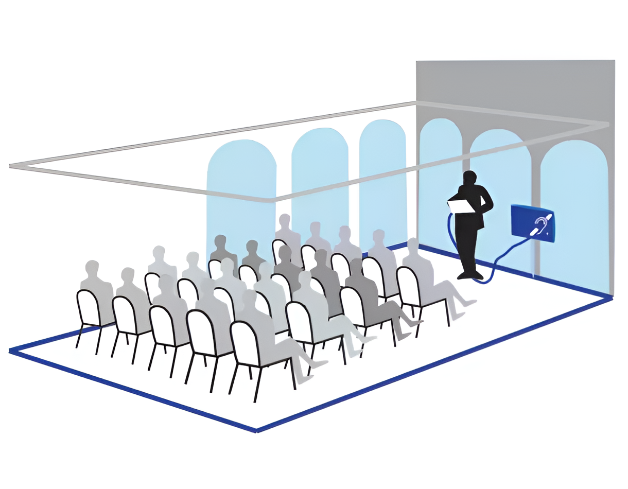 Стационарная индукционная петля может быть подключена к системам оповещения, громкой связи и другим источникам сигнала.