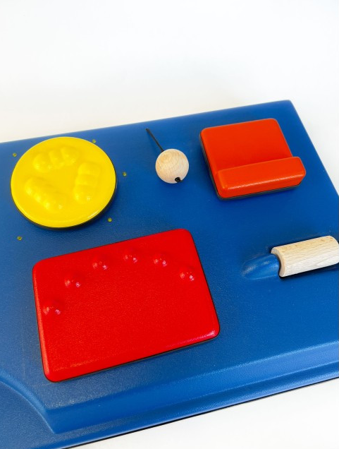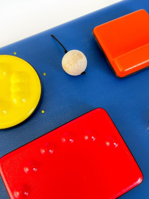 5-ти функциональный развивающий центр создан с целью раннего развития у детей от 3-х лет; также его можно использовать для обучения детей с задержками в развитии. Устройство имеет пластиковый корпус и 5 переключателей для активации различных функций (звуковое сопровождение, вибрация, световой эффект). Изготовлено из высококачественного ударопрочного пластика, имеет обтекаемые плавные формы без острых краёв и углов.
