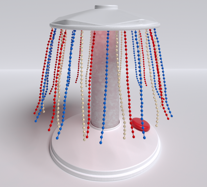 Игра «Карусель с цепочками» создана для веселых игр и сенсорного насыщения детей с ограниченными возможностями здоровья; поможет обучить ребенка внимательности и развить у него причинно-следственные связи. Представляет из себя карусель, на купол которой подвешены цепочки из бусинок. Изготовлено из высококачественного ударопрочного пластика, имеет обтекаемые плавные формы без острых краёв и углов.