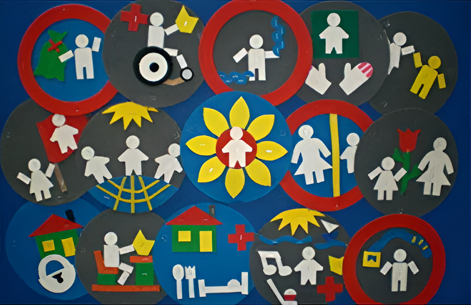 Набор состоит из 19 кругов диаметром 25 см каждый с отображением различных ситуаций и прав людей, а также инструкции и заданий для работы. Возможно использование при проведении «Уроков доброты».
