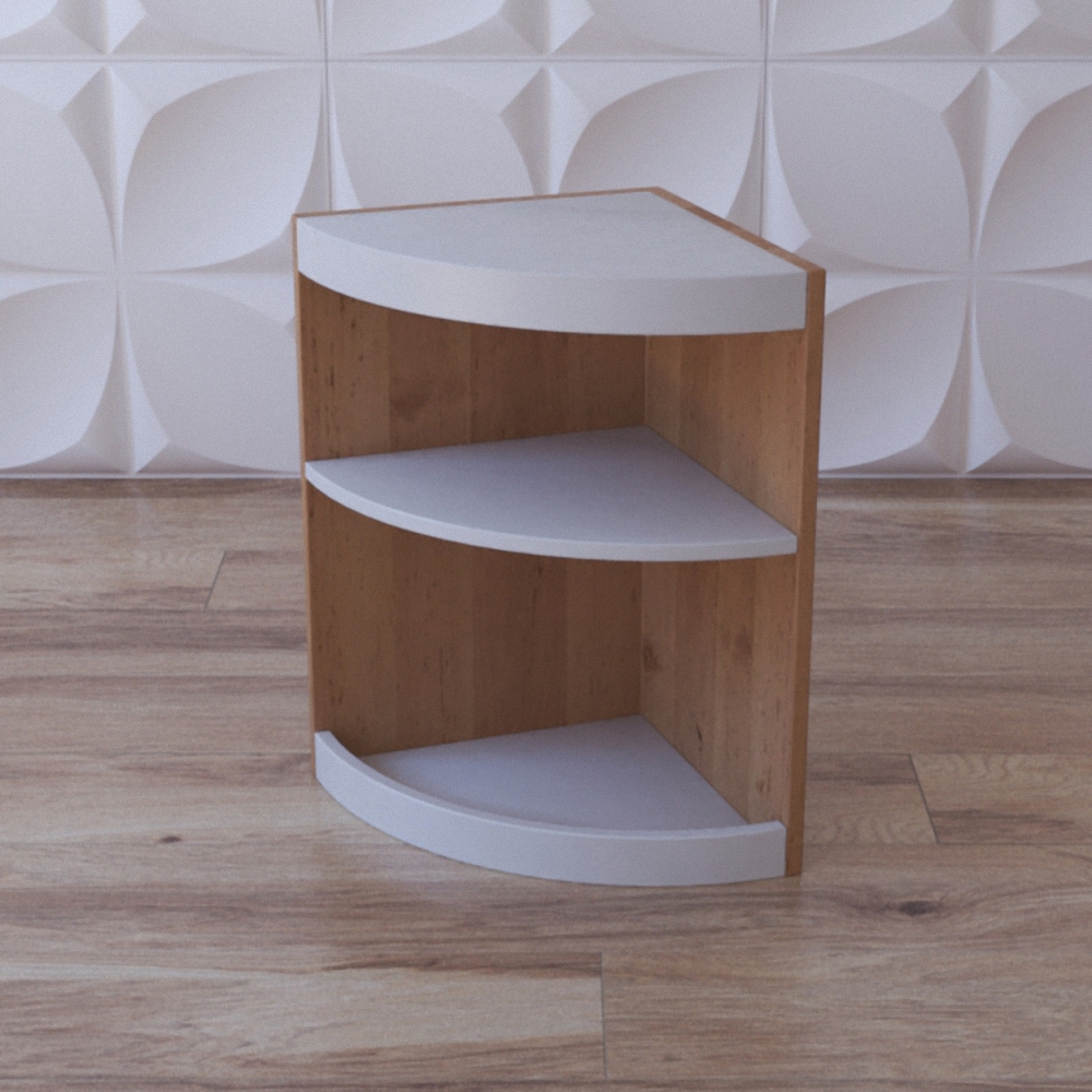 Игровой стеллаж “Уголок для мелочей” является дополнительным приспособлением для хранения учебных пособий или игрового материала. Предназначен дл оборудования дополнительными местами хранения столов или стеллажей, шкафов в группах детских садиков, коррекционных и реабилитационных центрах, классов в школах и т.д. Игровой стеллаж “Уголок для мелочей” имеет 3 полочки четвертькруглой формы, окрашенных в белый цвет; основание же имеет цвет натуральной древесины.