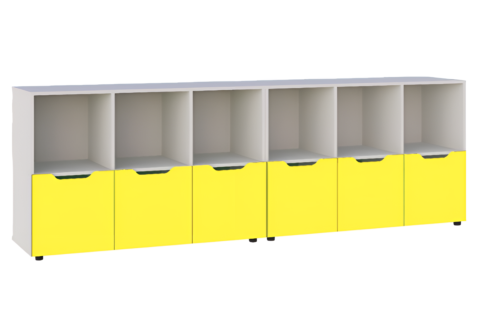 Стеллаж модульный Tengri состоит из открытых полок и выдвижных ящиков. Оснащен пластиковыми регулируемыми ножками.