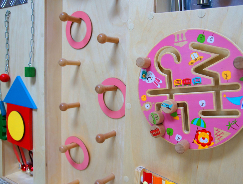 • Бизиборд с цепочками-колечками отлично подходит для игры как в домашней обстановке, так и в детских учреждениях.