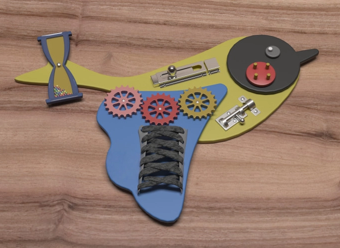 Это бизиборд, который будет интересен и увлекателен для детей разных возрастов. Форма в виде воробья познакомит ребенка с миром птиц. Доска безопасна: нет острых углов, а поверхность не оставляет заусенцы на коже малыша. Бизиборд можно использовать для дома, для детских центров, детских садов, для ресторанов и клиник.