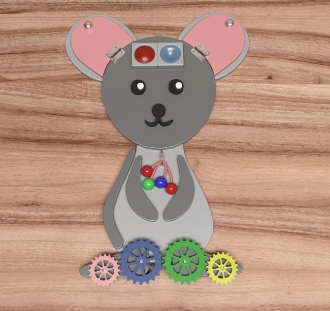 Бизиборд в виде мышки не только украсит любую детскую комнату, но и развивает умственные качества ребенка. Игра выполнена из качественных и безопасных материалов.