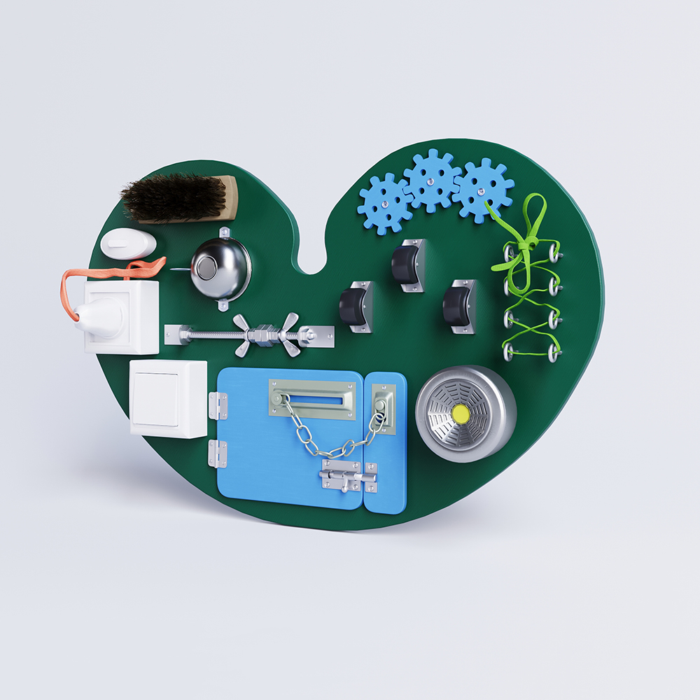 • Расскажите ребенку, как работают элементы бизиборда: открывающиеся дверцы с замками, выключатель, розетка с вилкой. Приведите примеры, где можно встретить подобные элементы в жизни. Таким образом, малыш становится самостоятельным, а удовлетворяет детское любопытство к бытовым вещам.
