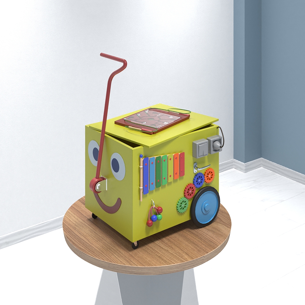 «Бибика» - мобильный многофункциональный компактный бизикуб, оформлен в виде весёлой машинки с множеством разнообразных приспособлений для раннего и всестороннего детского развития.