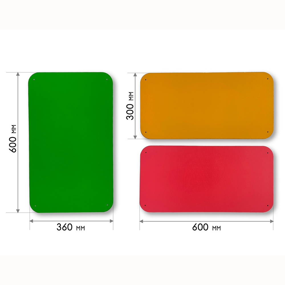 Дополнительные модули бывают однотонные и с тематическими иллюстрациями, подходящими под тематику дидактических панелей. Разнообразие размеров способствует декорированию стен различной конфигурации и масштабов. Параметры варьируются от совсем маленьких модулей 300х300 мм до крупных размеров 600х600 мм.