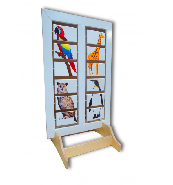 Напольная развивающая панель о мире животных №2 изготовлена из натурального дерева с трехступенчатым шлифованием и безопасным покрытием красками и лаком. Панель состоит из двухсторонних секций, в каждой из которых размещены вращающиеся таблички с изображениями частей животных и птиц. Принцип действия - ребенок, вращая таблички по очереди, составляет изображения животных и птиц методом подбора. Такая игра помогает развивать оба полушария мозга одновременно, задействуется логическое и критическое мышление.