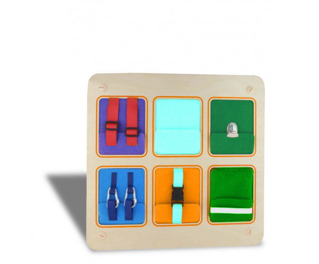 Панель для быстрых рук - это красивая игровая зона, которая выполнена из качественных материалов и не оставляет зацепок в детских ручках. Эта деревянная панель квадратной формы. Внутри находится шесть разных мешочков на своих застежках. Один замок на кнопках, другой на пуговицах, еще есть замочек на молнии. Пуговицы все разной формы и размеров. Панель подойдет как для маленьких детей, так и постарше, а родителям поможет сохранить дом в целости и сохранности. Она подойдет для домашнего использования и для специальных учреждений.