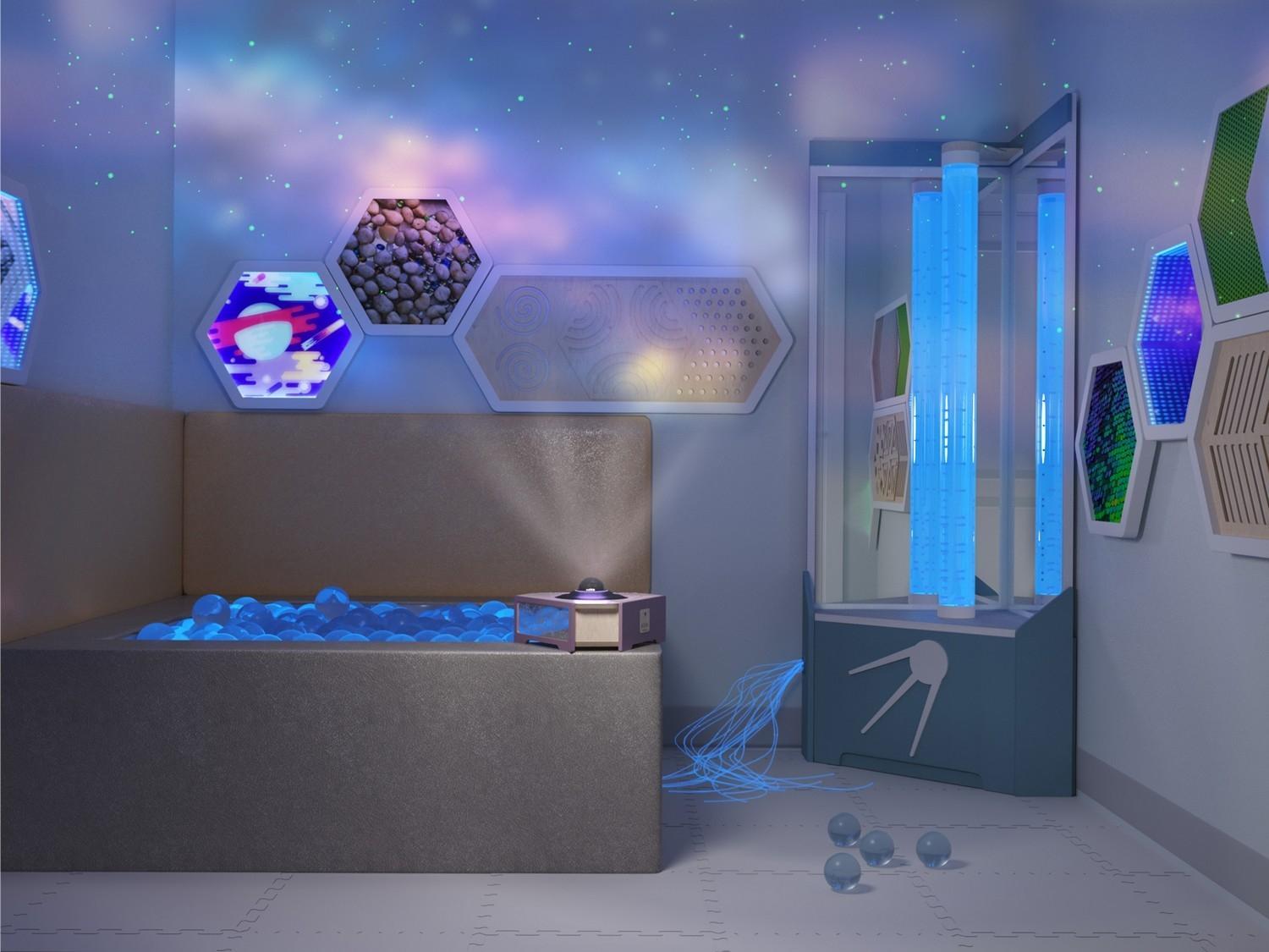 Комплект оборудования решает проблему с поиском различных поставщиков для обустройства сенсорной комнаты и позволяет комплексно оснастить помещение всем необходимым.
