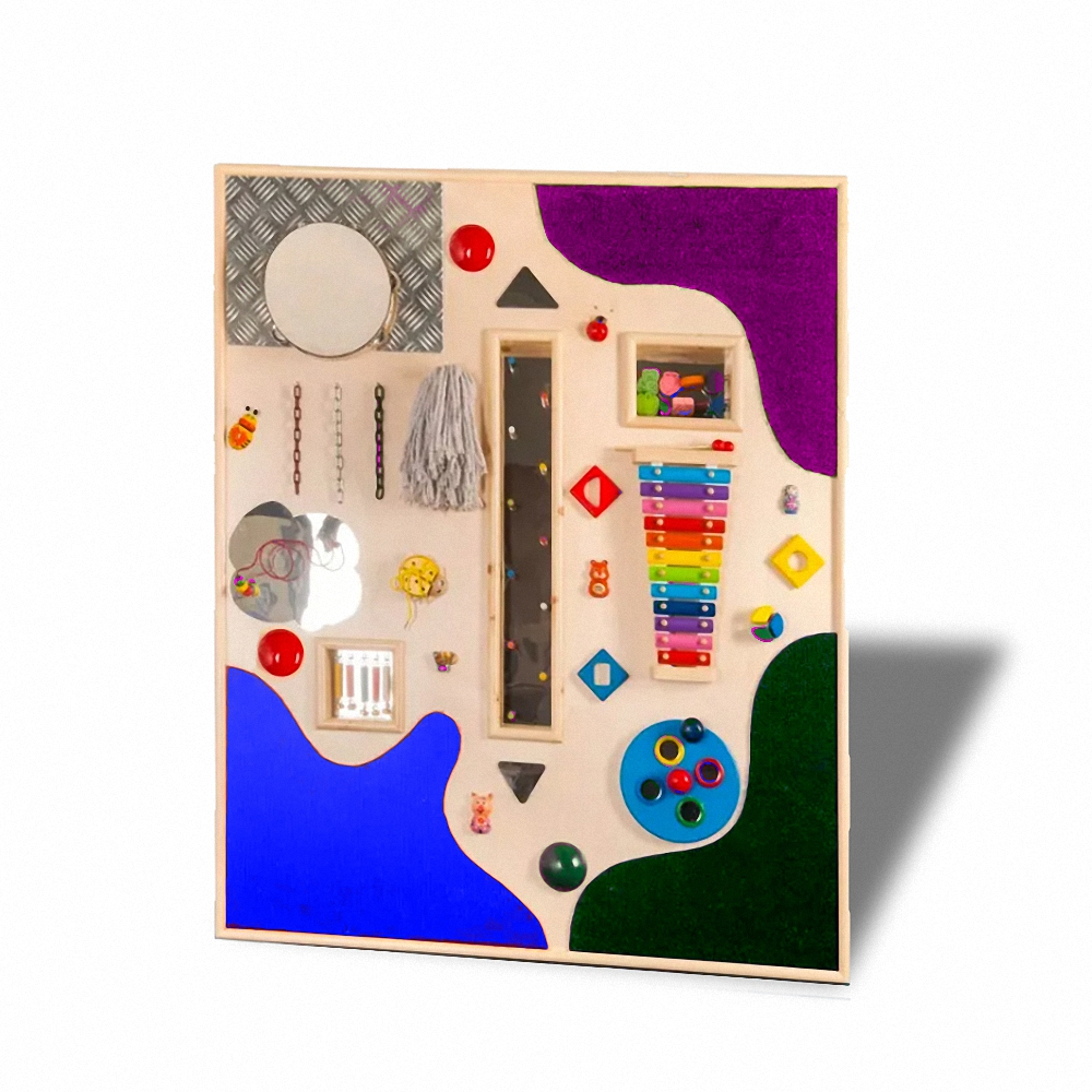 "Мир Звуков"- это панель, на которой расположены музыкальные инструменты: колокольчики, металлофон, цепочки. Также есть цепочки, зеркало, подвижные фигурки, геометрические формы. "Мир Звуков" заинтересует как маленьких детей, так и постарше, а родителям поможет сохранить дом в целости и сохранности. Аккустическая тактильная панель Малая "Мир Звуков" подойдет для домашнего использования, так и для специальных учреждений.