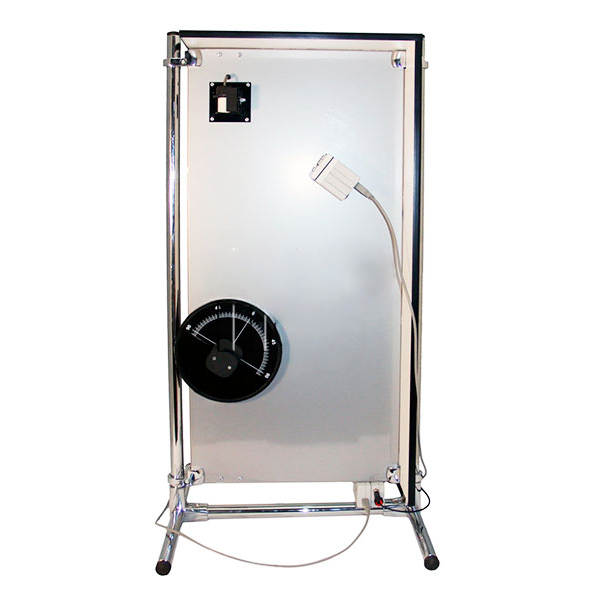 Узел крепления источника поляризованного когерентного излучения обеспечивает изменение направления луча по двум угловым координатам, и вращение источника вокруг продольной оси на 90⁰. Ось поворотного диска с образцом соединена с цифровым датчиком угла поворота, что позволяет измерить угол падения излучения на поверхность образца. Интенсивность излучения, отраженного от одной грани образца, измеряется цифровым датчиком света.