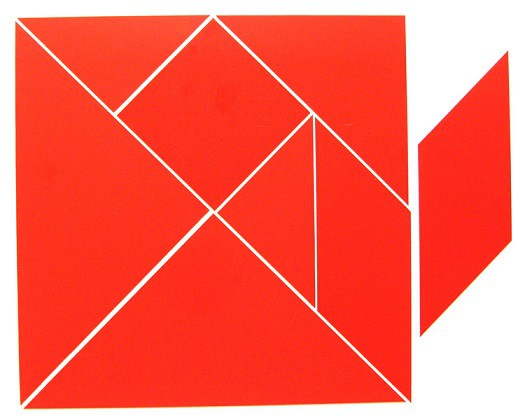 Нам остается добавить, что в комплект магнитного Танграма входит дополнительный параллелограмм, который необходим для складывания некоторых фигур. Это сделано потому, что только параллелограмм не имеет зеркальной симметрии.