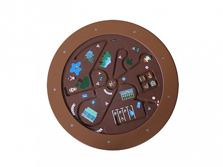 Балансировочная панель представляет собой планшет в форме круга с расположенным на нём лабиринтом, выполненным в виде стилизованной городской инфраструктуры, по которому передвигаются металлические шарики, имитирующие автомобили.
