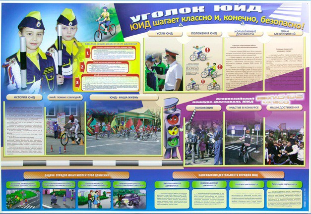 Стенд "Уголок ЮИД: ЮИД шагает классно и, конечно, безопасно!"