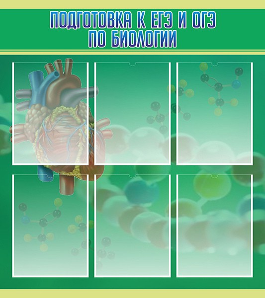 Все больше людей задумываются над тем, что хотят связать свою жизнь с биологией, поэтому выбирают для сдачи экзамена в форме ГИА или ЕГЭ именно этот предмет. На данном стенде учитель может разместить любую информацию, интересующую выпускников. На этом стенде располагаются шесть удобных кармашков, формата А4. Яркая надпись "Подготовка ЕГЭ и ГИА по биологии" обратит на себя внимание учеников, и важные сведения не останутся незаметными. Стенд сделан из высокопрочных материалов, что поможет ему прослужить долгие годы, сохраняя свой первоначальный вид. А приятный фон будет радовать глаз учителю.