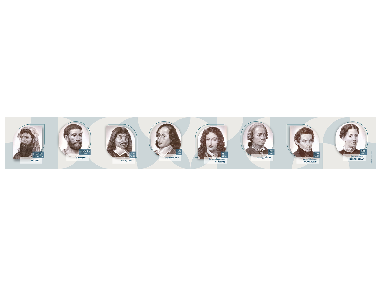 Стенд-лента представляет собой панель, на которой размещена информация о выдающихся ученых-математиках.
