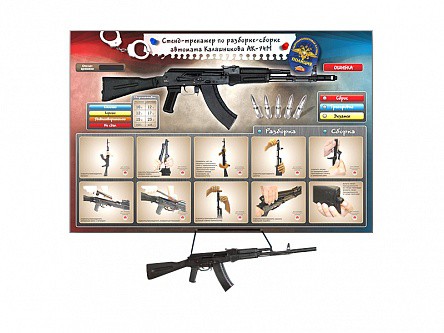 Интерактивный стенд-тренажер "Сборка-разборка АК-74М" с муляжом автомата Калашникова