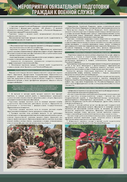 Главная Каталог Стенды Кабинеты ОБЖ и НВП Стенд "Мероприятия обязательной подготовки граждан к военной службе"