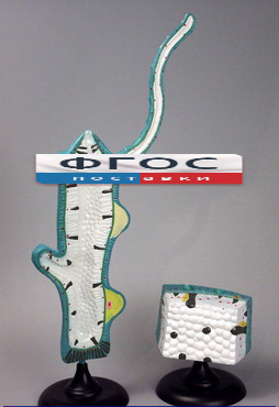 В комплекте 2 модели,  изготовленные  из пластмассы и окрашенные в контрастные цвета. Одна модель (большая) демонстрирует особенности  внешнего и внутреннего строения пресноводной гидры (имеет съемную щупальцу), ее высота не менее 50 см. Вторая модель (малая) демонстрирует клеточное строение тела гидры, ее высота не менее 12 см.