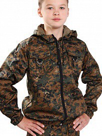 Костюм состоит из куртки и брюк. Куртка укороченная с капюшоном, центральной застежкой на тесьму-молнию, с накладными карманами с клапанами и декорацией из полукольца, рукав втачной по низу стянут эластичной тесьмой. Низ куртки стянут на эластичную тесьму. Брюки прямые на поясе стянуты эластичной тесьмой, карманами с отрезным бочком и боковыми карманами с клапаном. Рекомендуемые материалы: смесовые ткани. ГОСТ 25295-2003